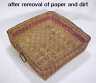 The previous owner also had sewn in an up-side-down paper bag 'liner' into the basket, which was dirty and torn. This was also removed, revealing the lovely original dyed ash trim, which also matches the two sewing notion baskets.